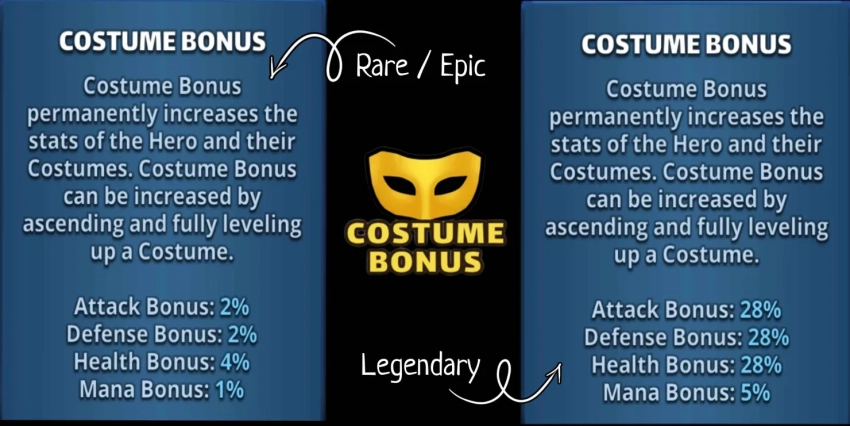 Credit by PlayForFun This is a Challenges event which combines the Starfall Circus, League of Villians, Slayers of Fell Shadows and Mighty Pets. The reflected color is specific to the stage. Summoning Appearance Rates Rare Event Hero: 71% Epic Event Hero: 26.5% Legendary Event Hero (non Featured): 1.5% Legendary Featured Event Hero: 1.0% For each summoned Legendary Event Hero you have a 20% chance to get another Legendary Event Hero as a bonus. Costume included if available. BONUS DRAW Legendary Hero of the Month: 1.3% Summons Costs Like all other Event Summon Portals, the Portal Cost is per below: Single Summon 10 Challenge Coins 350 Gems 10x Summon 3000 Gems Guide by BirksG Special Gameplay Event specific hero bonus Heroes of the Villains, Starfall, Bard an Slayers family bypass the Elemental Barriers in this Challenge Event’s stages Heroes of the Villains, Starfall, Bard an Slayers family have increased attack, defense, and health (+20%) in this Challenge Event’s stages The event stages are consist of heroes from Starfall Circus, League of Villians and Slayers of Fell Shadows challenge events, and each of them has got the usual special effect: Starfall Circus In the Starfall Circus the stars fall every 5 turns with the following effects: The starfall deals {x} damage to all Heroes (X=100 for Rare, 150 for Epic, 200 for Legendary) The starfall interferes with 2 of your Battle Items. The interference prevents the use of a Battle Item for 3 turns Changes the element of all heroes to the element they are strong against (lasts for 5 turns) League of Villians Divine Smite effect: In the League of Villians stages, every time you use a Special Skill or Battle Item the Divine Smite gets closer ! When Divinie Smite is reached all enemies receive X damage. (X=100 for Rare, 150 for Epic, 200 for Legendary) The Divine Smite bar will be reduced if you don't use any Special Skills or Battle Items during your turn. Poison In the League of Villians stages, all heroes receive Y damage every turn (X = 20 for Rare, 30 for Epic, 50 for Legendary)