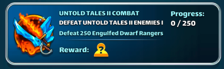 This thread is about The Untold Tales II in reduced cost. The first occurrence was on November 14, 2025 Event: Untold Tales II (Reduced Cost) The Untold Tales II : Dwarven Riches event is a reduced cost ! Core Rules: The basic functioning of the season (Stages, missions, etc.) remains the same as the original version. Find the UT2 guide New Feature: The main difference is the addition of "Dwarven Monolith" monsters, which allow you to earn extra rewards when you complete the levels. Access Conditions and Cost How to Access the Event Where to Find It: Access is via the Seasons Tab. Prerequisite: You must have completed UTD1 chapter 2 Base Season: It is available permanently. Frequency (Summon Portal): It is part of a 4-day rotation among several seasons: S2 > S3 > S4 > S5 > UT1 > UT2 Energy Cost (Reduced) The levels in this event cost less World Energy than usual: Easy Mode: 3 to 7 energy. Hard Mode: 7 to 12 energy. Specific Gameplay: Dwarven Monolith What is a Dwarven Monolith ? These are creatures that can appear randomly in levels. They grant extra rewards if you complete the level: Untold Tales Coins Emblems Crafting items Resource Bundle Daily Clam Limit The quantity of Dwarven Monolith you can obtain is limited each day. Starting Cap: 15 clams per day. Increase: The limit increases by 15 each day up to a maximum of 60 clams per day. Monster Lure (Paid Option) The Monster Lure is an upgrade available through a special paid offer: It immediately increases your daily Dwarven limit from 15 to 25 per day. It also increases the quantity of specific UT pieces found in loot. It increases your chances of finding rare monsters by 1000% How to Defeat Dwarven Monolith (Combat Tip) Invulnerability: The Dwarven monolith appears in a closed statue and is protected from direct damage for 3 turns (Except for the first, 4 laps before opening up). Attack: It then opens up, allowing you to defeat it. Tip: If you use a damage sharing ability (which damages all enemies), you can defeat the clam even when closed by targeting the other monsters. Untold Tales Il Summon Portal Summon Cost 1 Summon: Costs 350 Gems or 100 UT Coins. 10 Summons: Cost 3000 Gems. 30 Summons: Cost 8400 Gems. Appearance Rate Presence of heroes from three groups: The heroes from Untold Tales Il. The heroes from Season 3. The heroes from Season 1 (but without costumes). Resources (Farming) No farming documentation available at this time. Find the farming thread here: Reference Farming Find details of stages by Elioty33 : Drive Elioty UT2