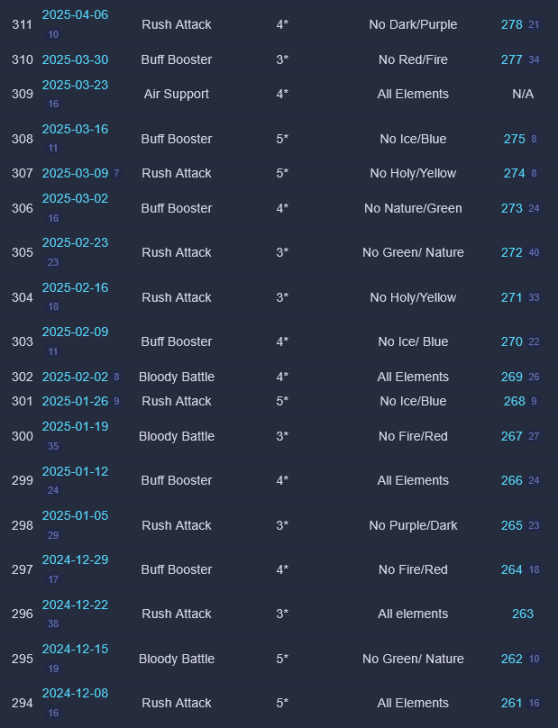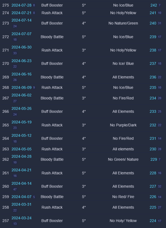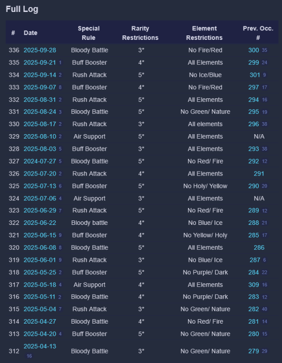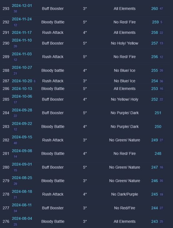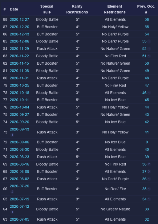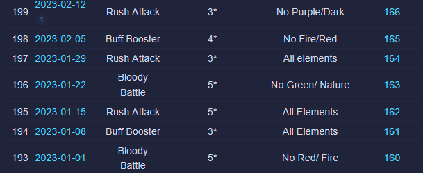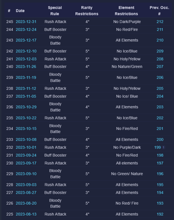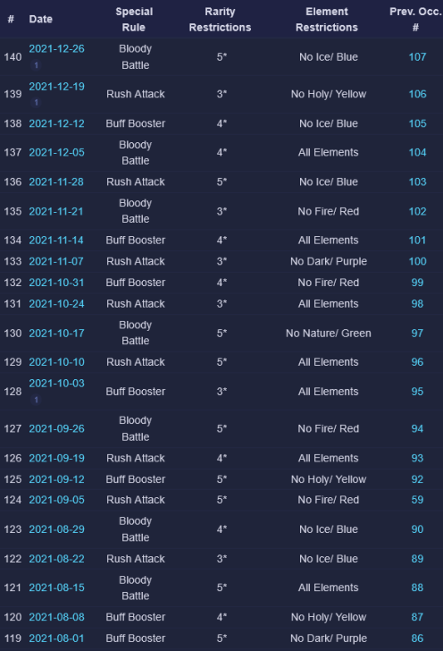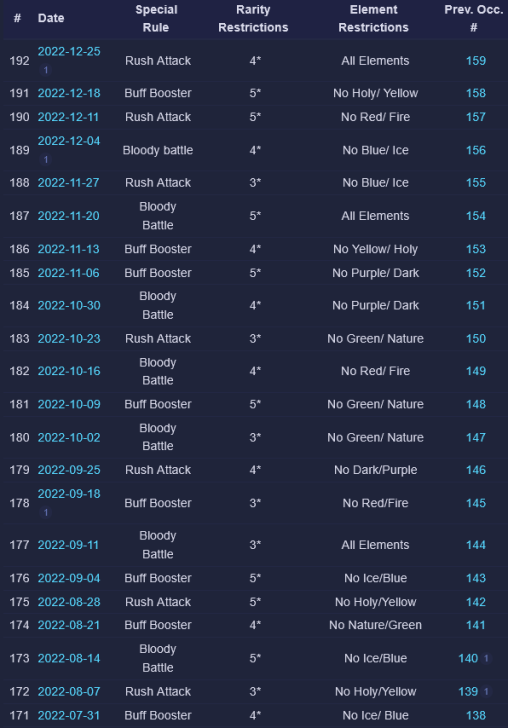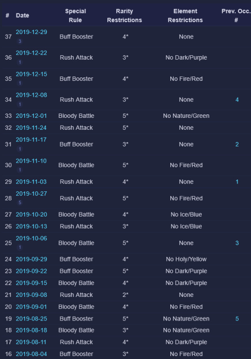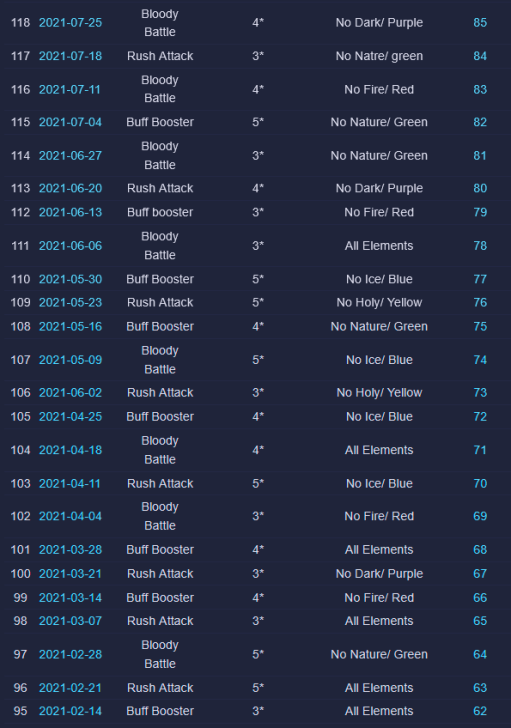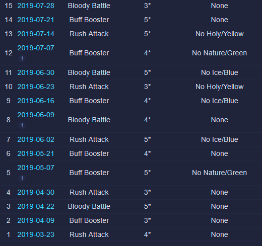 Credit by PlayForFun This a weekly competition running on weekdays among players, where you can perform maximum 5 Raids with specific restrictions, which uses a special energy. 1. Overall Process for the Tournament Raid Tournaments have 3 phases: Preparation Phase that lasts for 24 hours. During the preparation phase you join the up coming Tournament and prepare your defense team. You can only use defense teams that match the event rules. Battle Phase that lasts for five days. The Battle Phase is divided to Five Battle Days where you have five attacks available for each Battle Day. You can only use attack teams that match the event rules. Reward Phase that lasts two days. Your final score will determine your reward tier. You get rewards only from the highest reward tier that you belong to. 2. How Attacking Works Other than restrictions on heroes/troops and Special Rules, the Raids themselves in Weekly Raid Tournaments work the same way as regular Raids. Each day, you'll be able to attack up to 5 teams. The flags used for Raid Tournaments are separate from regular Raid flags. NOTE: Kills in Raid Tournaments count toward your Wanted: Heroes Raid Chest, so Raid Tournaments also effectively give you extra flags to potentially help fill your chest. One notable difference to Regular Raids — you can’t reroll. For the whole of the Tournament, you have 4 "Lives." Each time you lose a Raid, you lose one life. The lives do not reset across days of the Tournament. Once you'd lost 4 times at any point during the Tournament, you are out. If you choose, you can pay some gems to reset your lives after 4 losses — but your score and ranking would still be lowered because of the losses. Paying to reset your lives does NOT give you an advantage from the Raids you've already fought. It simply allows you to continue using your normal 5 flags per day and not be "out" of the Tournament. There is no way to buy additional flags. So everyone ultimately had the same number of maximum flags to use for attacks during the Tournament. The only thing gems allow you to do is continue playing if you've used up all of your lives. 3. Matchmaking for Attacks As of the Third Raid Tournament, initial matchmaking was based on your Top 5 strongest heroes that qualified for the Tournament's rarity and elemental restrictions. This was slightly amended as of the Fourth Raid Tournament: > The difficulty of the opponents reduced slightly in the beginning of tournaments. 4. Matchmaking for Defense As of the Sixth Raid Tournament, matchmaking for Defense teams was changed again: Further improvements to the distribution of attacks, especially for the top players. Keep in mind that if you're in the top, your defense team will receive more attacks. This is due to the fact that there is a small number of top defense teams that are good matches for a large number of top attackers. We try to prioritize choosing a good opponent over choosing a too easy or too difficult opponent that hasn't been attacked as much. We have also implemented a limit on how attacks count towards your Defense Grade. After the first five attacks of the day, only one attack per hour counts towards the grade. Changes to the starting difficulty of opponents your defense team faces. It is no longer based on the defense team you pick, but your best heroes that match the tournament requirements. We've brought this rule back because we want to encourage players to choose the best defense team they can, and thus provide a better challenge to their opponents. Due to the way the Team Power is calculated it was possible, for example, to pick a defense team of two fully leveled, fully ascended heroes that were on paper equal in Team Power with a full team of lower rarity heroes, but in practice that full team would be defeated in most cases. 5. Scoring Raid Tournaments are scored based on four factors: Enemies killed: The amount of enemies killed during your attack. Winning: Victorious attack will award extra points. Difficulty Bonus: Winning the attack will award points based on comparing the performance of the opponent’s defense team with the performance of your attacks. Defense Team Grade: Your defense team will receive points in the end of each Battle Day based on their performance. 6. Defense Team Grade The grades are assigned based on a percentage of wins by your Defense Team: The Defense Grade is determined based on the win percentage of your Defense Team. At the end of each Battle Day, you receive points based on your grade. | Percent Won | Grade | Points | | 60% | A | 900 | | 50% | B | 650 | | 40% | C | 500 | | 30% | D | 400 | | 0% | E | 200 | Log of past tournaments