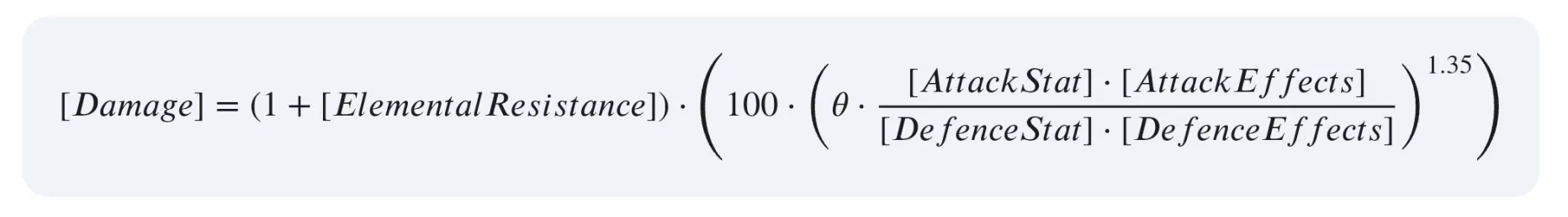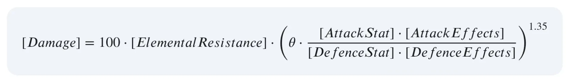 Damage ≈ 100 x ( θ x Att / Def ) ^ 1.35